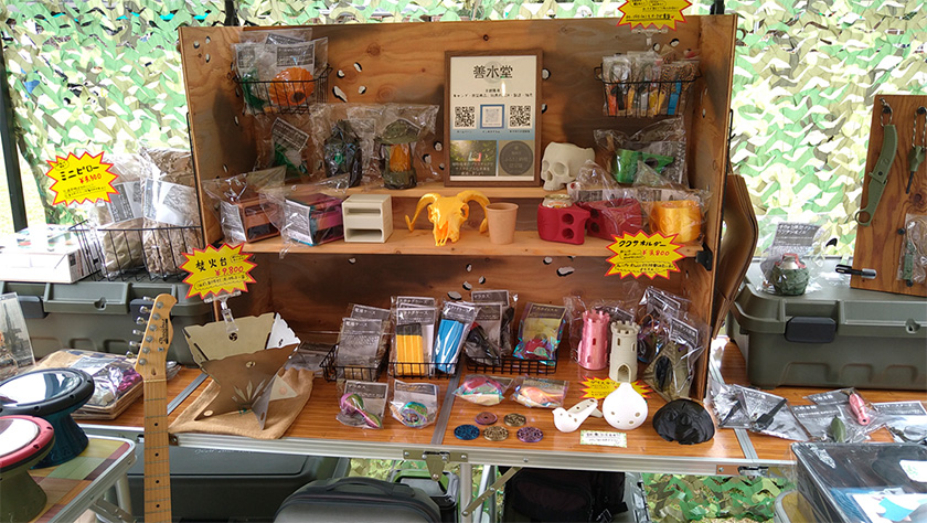 善水堂は、京都・亀岡を拠点に、キャンプ用品や玩具、ハンドメイドドラム、エアガンパーツなどを設計・製作・販売するものづくりの場です。